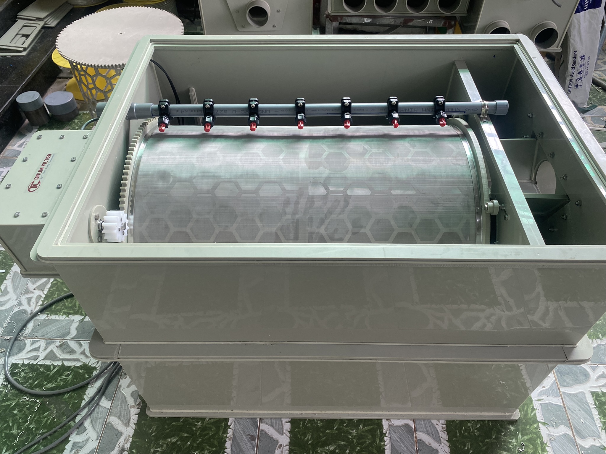 Drum Filter bộ lọc trống (Rotary Drum Filter – RDF) là thiết bị được lắp đặt trong ngăn lắng của hồ Cá Koi, thay thế cho chổi lọc. Drum Filter tự động đưa cặn bẩn, chất thải cá Koi ra khỏi hồ gần như tức thời qua lưới lọc rất mịn chuẩn 80 micromet mà hạt cát khó lọt qua được.