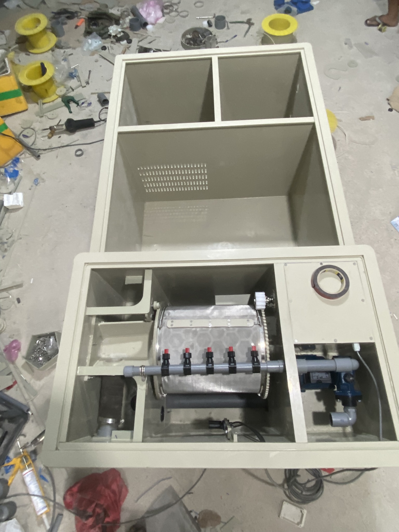 1. Ngăn đầu tiên – Ngăn lọc cơ học thô (Drum Filter):